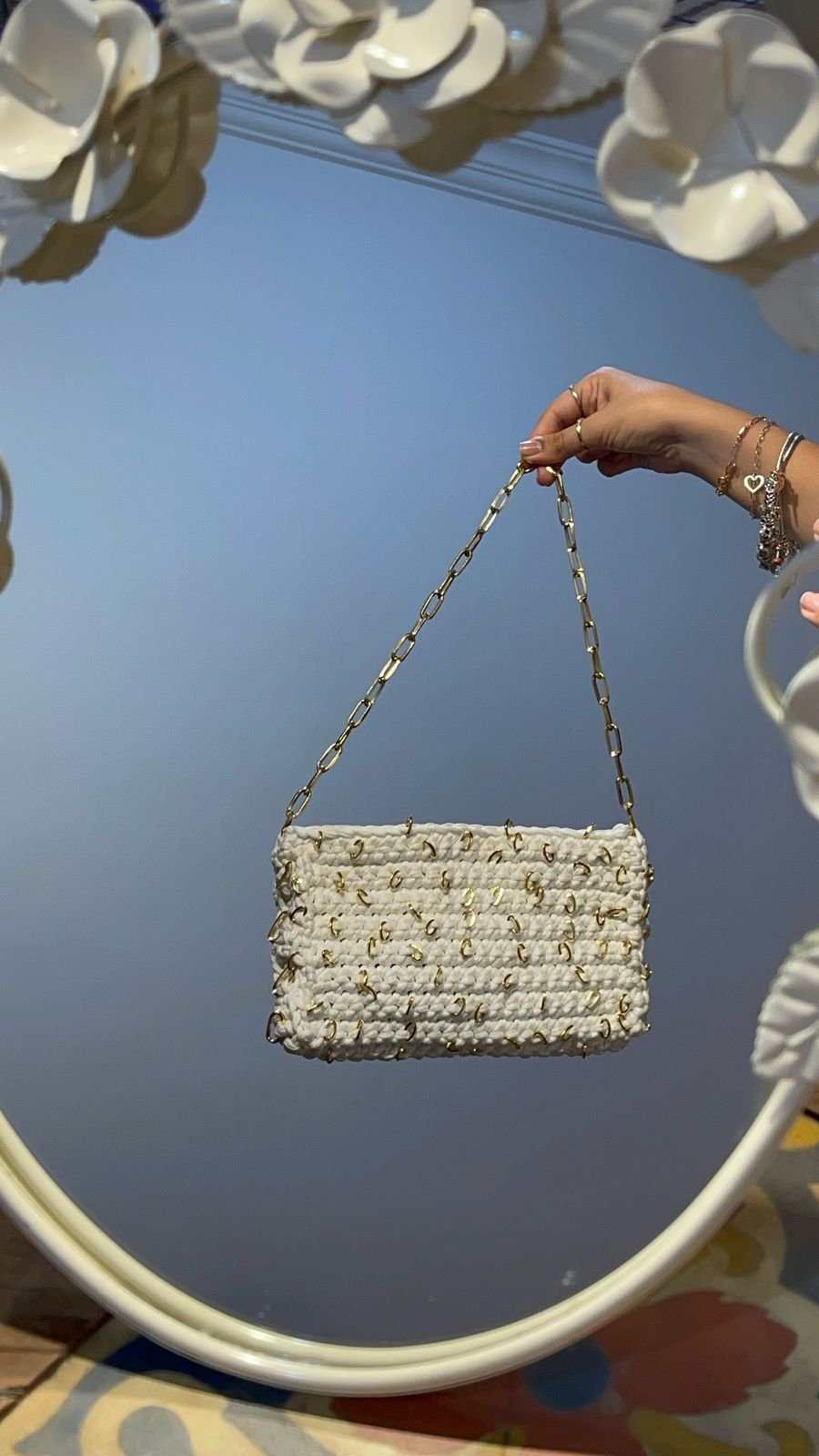 Sua diferença em relação à Mini Bag Elos está no tamanho do corpo da bag e no tamanho da corrente: